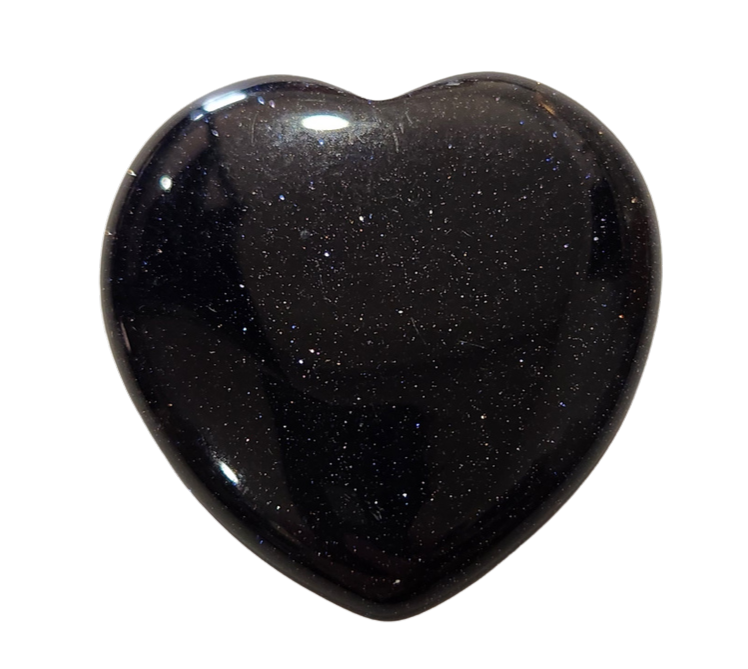This blue sandstone heart shimmers with deep midnight blue tones filled with sparkling copper-like flecks, creating a starry, night-sky effect. Smooth and polished, each piece glimmers as it catches the light, giving it a bold yet elegant presence.