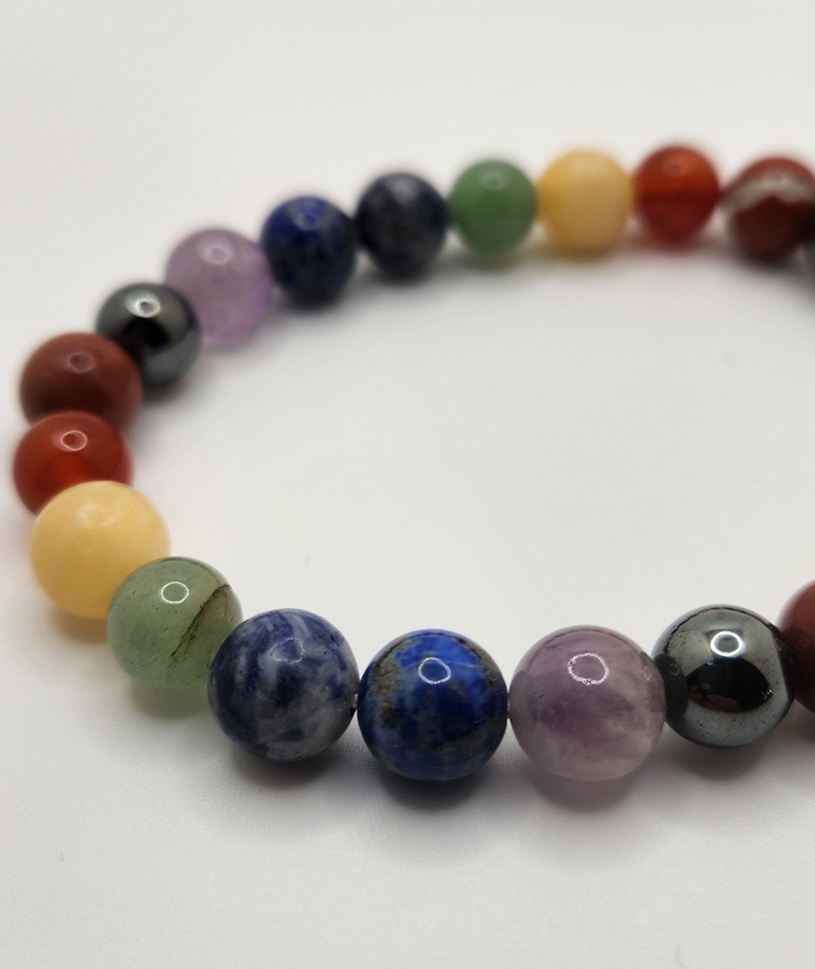 Each bead in the Natural Chakra Healing Bracelet is meticulously crafted from premium-quality semi-precious gemstones, chosen for their unique vibrational properties. With striking stones representing each of the seven chakras, the bracelet combines vibrant colors and textures to create a visually stunning piece. Beyond its aesthetic appeal, the bracelet’s natural stones work together to encourage positive energy flow, reduce stress, and support spiritual growth. Rest assured, this accessory is both stylish and purposeful.